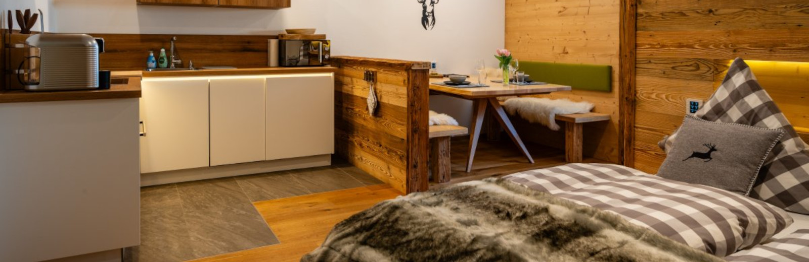 Ferienwohnung ca. 37m² für 1 bis 2 Personen (evtl. 3. Person auf Schlafsofa) oder für 4-6 Personen - kombinierbar mit der Wohnung Enzian über Verbindungstüre.