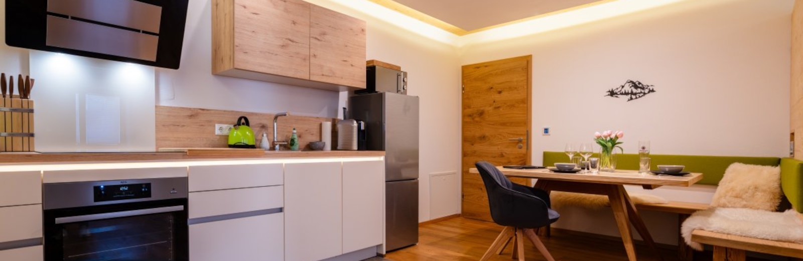 Für ein gemütliches Essen ist die Küche mit allem ausgestattet was das Herz begehrt. 4-Platten-Induktionskochfeld, Backofen, Mikrowelle, Kühlschrank mit Gefrierbereich, Spülmaschine, Toaster, Wasserkocher, Geschirr und Besteck, Kaffeekapsel-Maschine (Kapseln zum Selbstkostenpreis im Haus erhältlich.